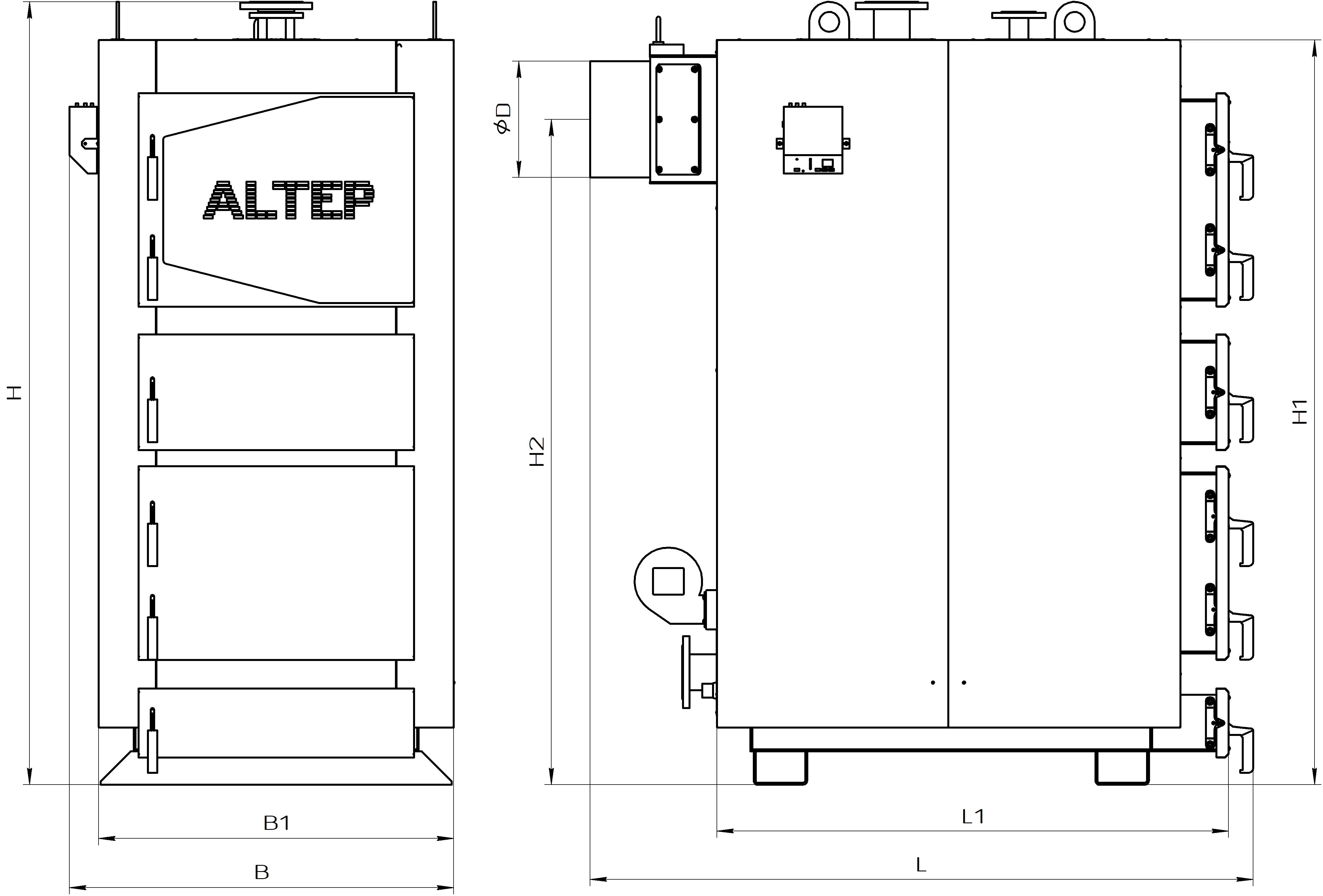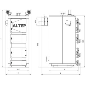 Overall dimensions of the boiler Altep Duo UNI PLUS 95-150 kW Overall dimensions of the boiler Altep Duo UNI PLUS 200-250 kW