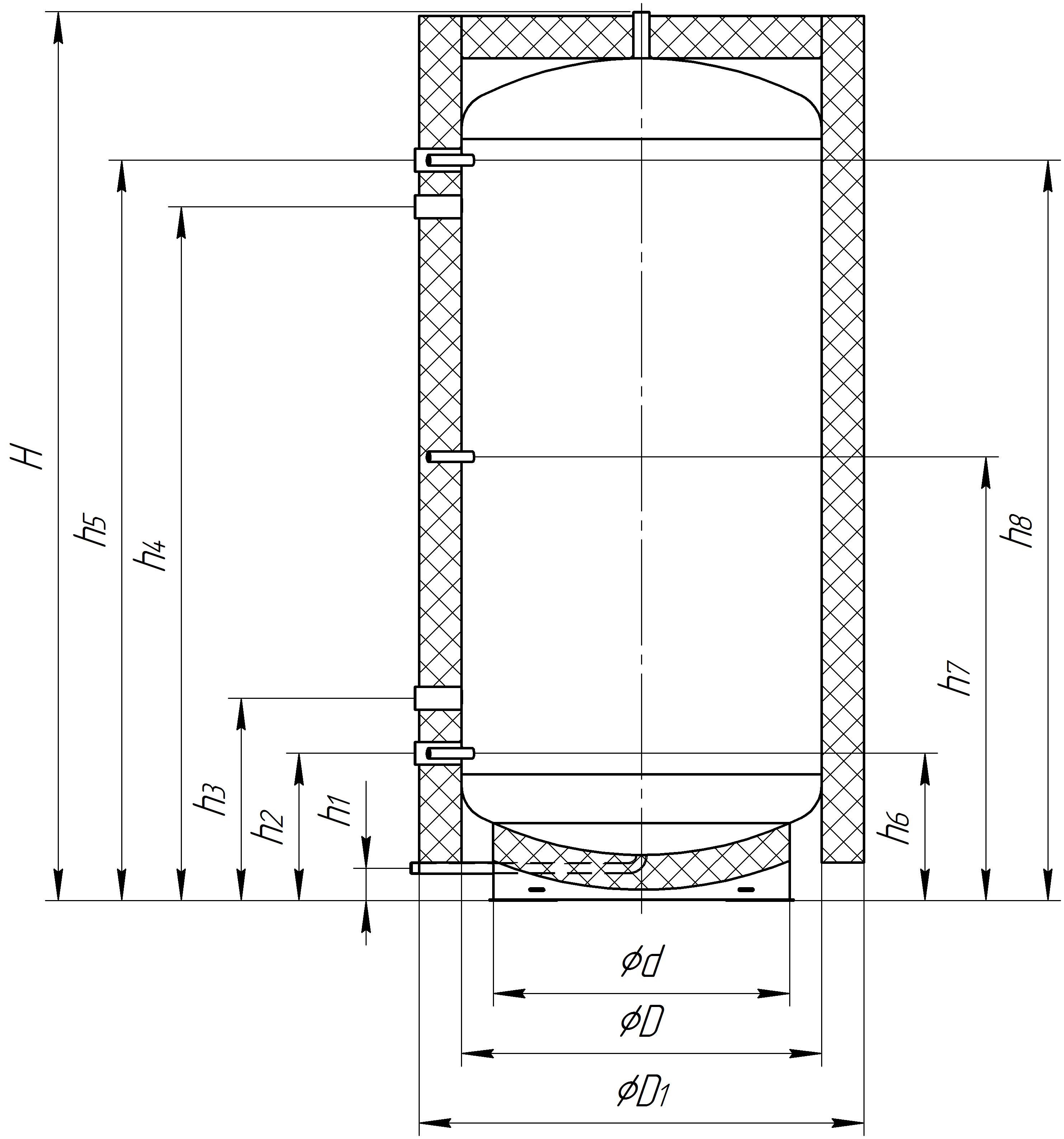 Round heat accumulators provide for the possibility of installing a heat exchanger (upper and lower) made of stainless or black steel.0°, 90°, 180°.